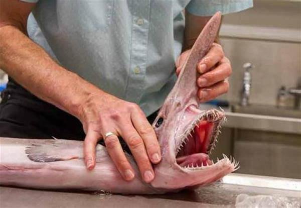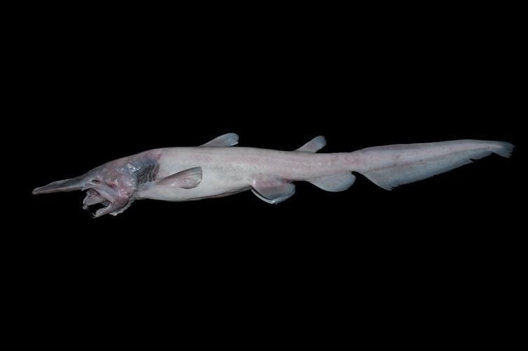 Акула-домовой обитает на глубине 200 м во всех океанах, достигает в длину до 3,8 метров. Её морда заканчивается клювовидным выростом, а длинные челюсти могут далеко выдвигаться6 फोटो