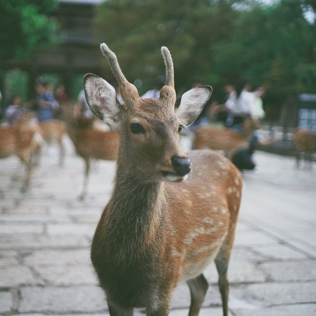 В городе Нара, Япония, вместо ��ошек и собак по улицам бегают стайки оленей