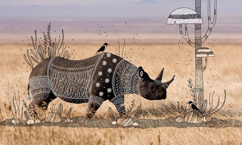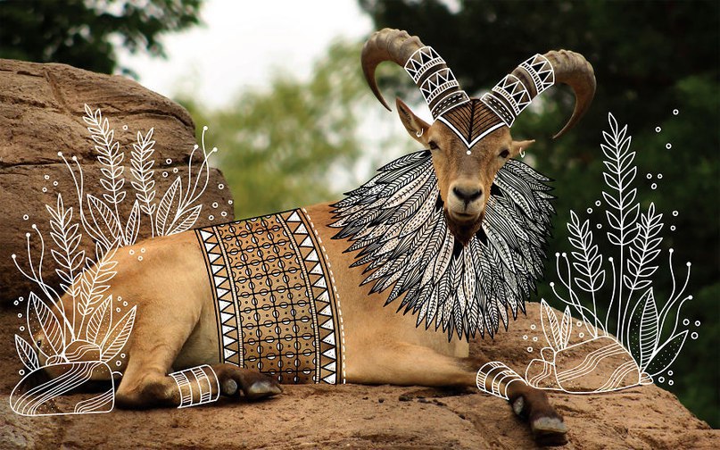 Иллюстратор Rohan Sharad Dahotre оформил фотографии животных в этническом стиле.