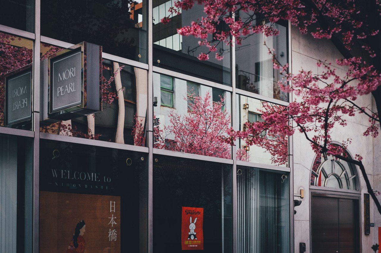 Цветущая сакура на улицах Японии
