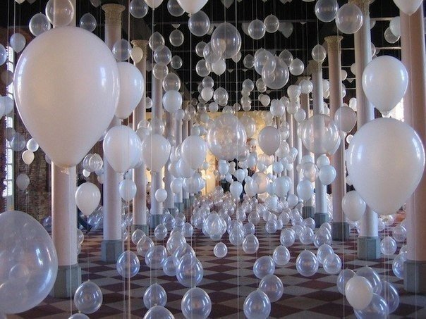 Зал галереи Bockenheimer Depot хореограф William Forsythe заполнил тысячами воздушных шаров. . Инсталляция Scattered Crowd отражает взаимодействие между людьми и окружающим пространством. <br>Посетитель сам решает насколько близким будет контакт: можно пр6 फोटो