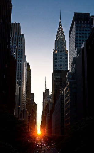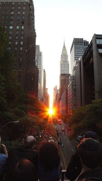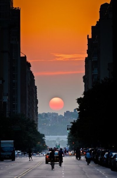 Манхэттенхэдж - явление, которое происходит на Манхэттене четырежды в год: в декабре, январе, мае и июле. Оно заключается в том, Солнце на закате и восходе совпадает с геометрией улиц города7 फोटो