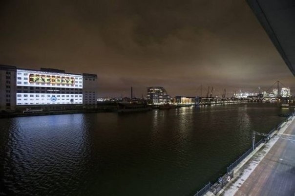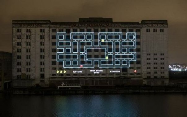 Гигантская игра Pacman в Лондоне . Этот огромный экран был спроецирован на фасад здания заброшенного завода Millenium Mills в Лондоне и официально признан крупнейшей в мире игрой Pacman5 फोटो