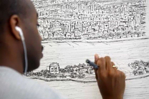 5-метровая панорама Нью-Йорка по памяти.. Страдающий аутизмом художник Стивен Вилтшер нарисовал 5-метровую панораму Нью-Йорка по памяти, после того, как в течении 20 минут изучал город с высоты птичьего полета6 फोटो