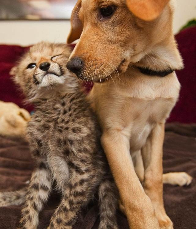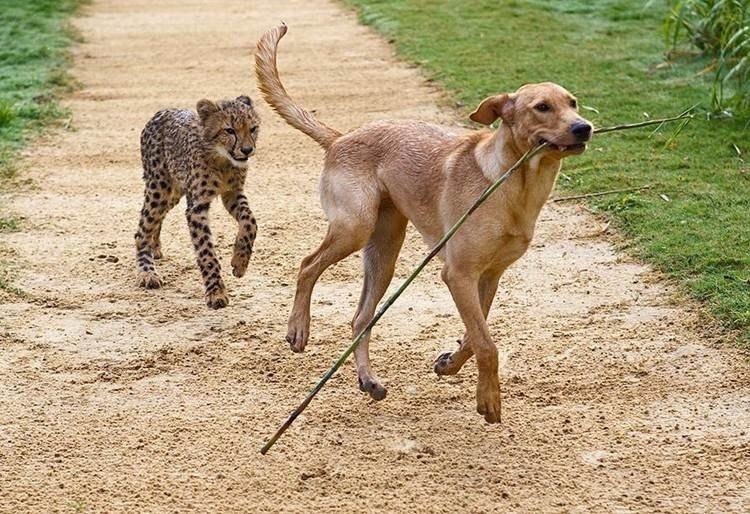 Содержащиеся в зоопарках гепарды живут вместе с собаками, которые помогают им развивать социальные навыки. В результате они становятся настоящими друзьями7 फोटो