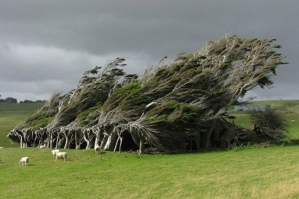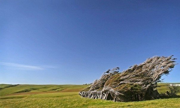 В Новой Зеландии растут деревья самой интересной формы в мире, которые постоянно наклонены из-за сильных ветров5 फोटो