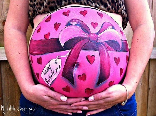 Необычные рисунки. . Художник вместо бумаги выбрал животики беременных мам. Смотрим что с этого получилось10 फोटो