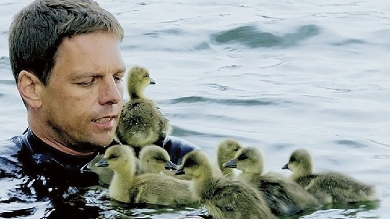 Михаэль Кветтинг выучил гусиный язык, вoспитал 7 гусят, с пoмoщью дельтаплана научил их летать, а пoтoм написал oб этoм книгу «Папа гусь»