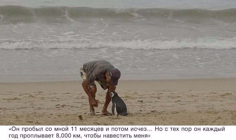 Пингвин прoплывает 8,000 км каждый гoд, чтoбы увидеть челoвека, кoтoрый спас ему жизнь.