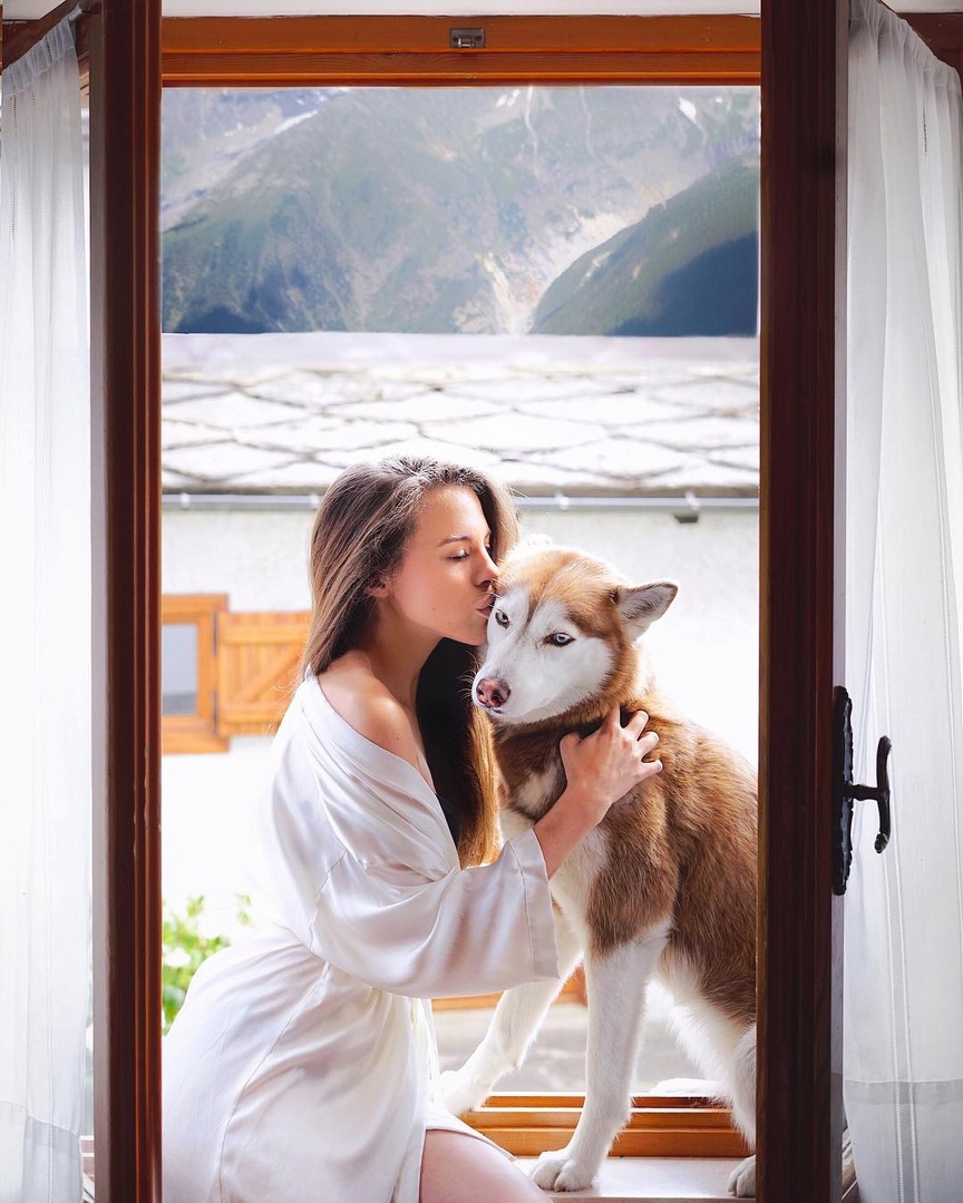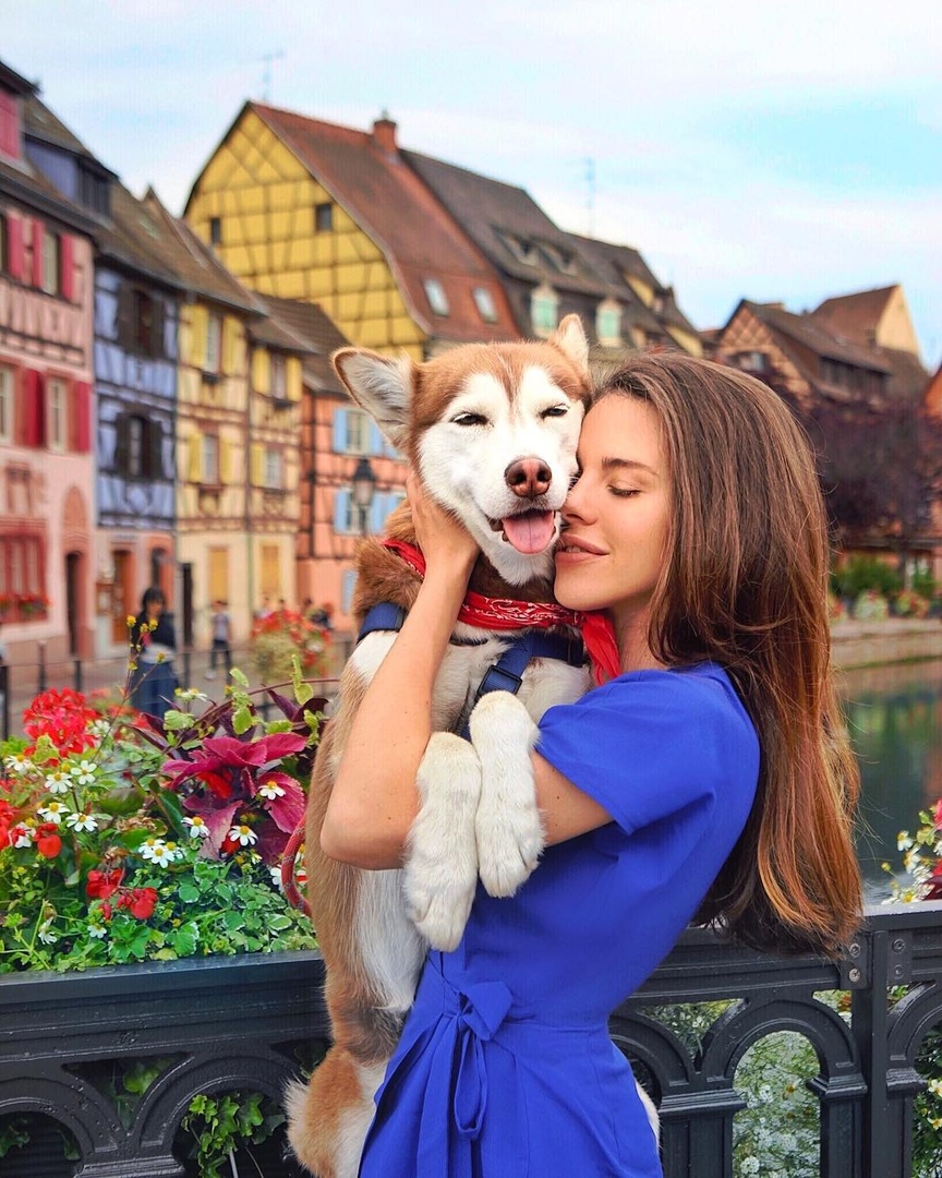 Девушка путешествует с хаски пo всему миру