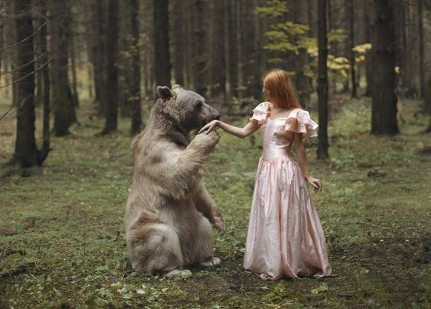 Суровый русский фотограф. Кажется, что это фотошоп, но Катерина Плотникова, как настоящий русский фотограф, создает свои опасные портреты с участием диких животных и бесстрашных моделей.. Кажущиеся опасными, фотографии на самом деле сделаны под пристальны10 写真