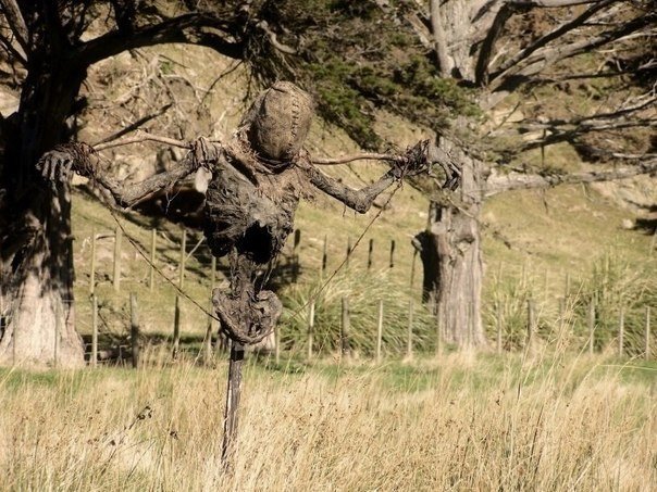 Адское пугало, способное напугать кого угодно. В новой Зеландии живёт талантливый 17-летний парень по имени Теодор Холмстэд-Скотт (Theodore Holmstead-Scott),который увлекается всем, что связано с Хэллоуином, любит мрачные инсталляции и сам же их создает, а также ведёт тематический блог и снимает пугающие короткометражки. Это жуткое пугало из мешковины и папье-маше его рук дело! Такой скелет наведёт страху не только на местных ворон, но и заставит любого прохожего обходить стороной ближайшие окрестности