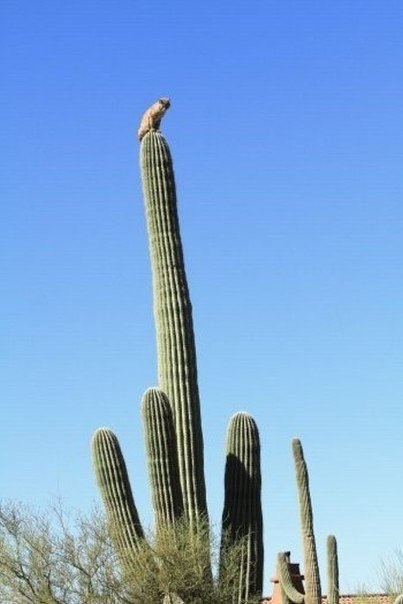 В Золотом каньене Аризоны горная пума атаковала рысь. Спасаясь от преследования, рысь в считанные секунды вскарабкалась на первое попавшееся убежище. Им оказался 12-метровый гигантский кактус Сагуаро3 写真