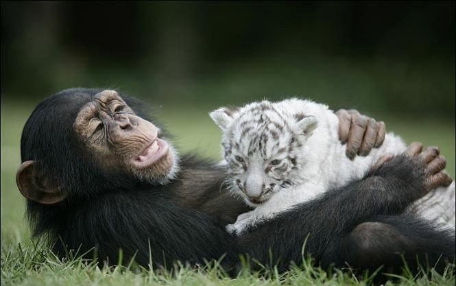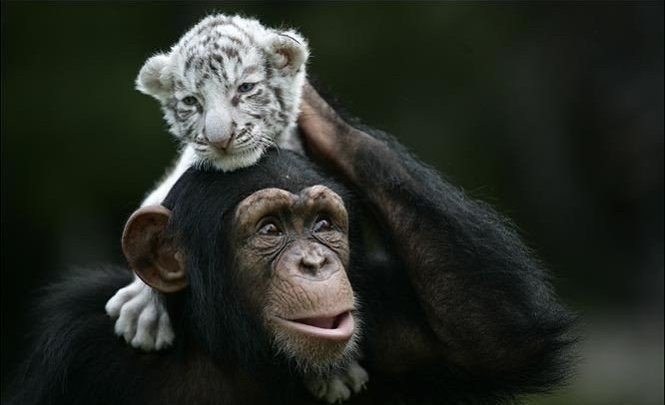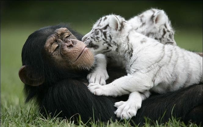 Шимпанзе растит тигрят. После урагана Ханна, который пронесся и по зоопарку в Южной Каролине, тигрица стала очень агрессивной и опасной для своих детей. Их отселили, и заботу о них взяла на себя 2-летняя шимпанзе7 写真