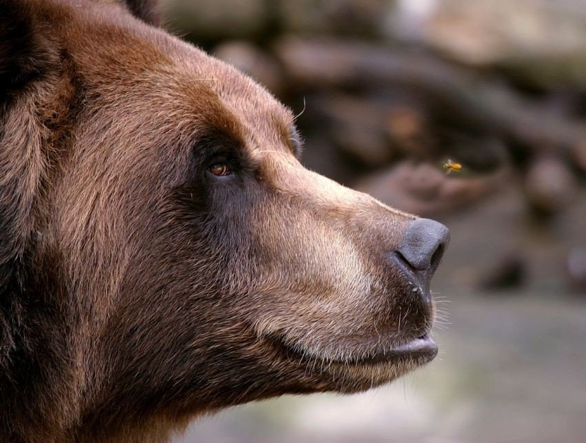 Медведь и пчела. Фотографу из Нью-Йорка Терри Черви (Terry Cervi) удалось запечатлеть веселую сцену: медведь кадьяк из зоопарка города Буффало по имени Тоби отгонял пчелу, которая собиралась его ужалить.<br>Тоби не отмахивался, а складывал губы в трубочку5 写真