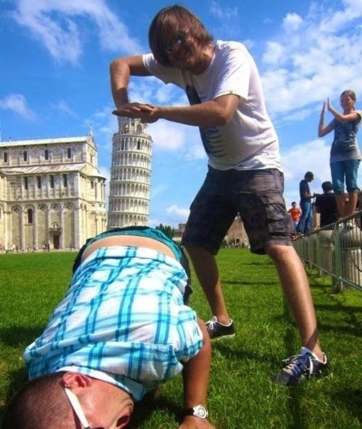 Фотографируйтесь с памятниками правильно. Путешествуя по различным местам, люди делают стандартные снимки с памятниками и скульптурами. Похожие друг на друга фотографии способны вызвать разве что зевоту. Ну кто не фотографировался с Пизанской башней в рук10 写真