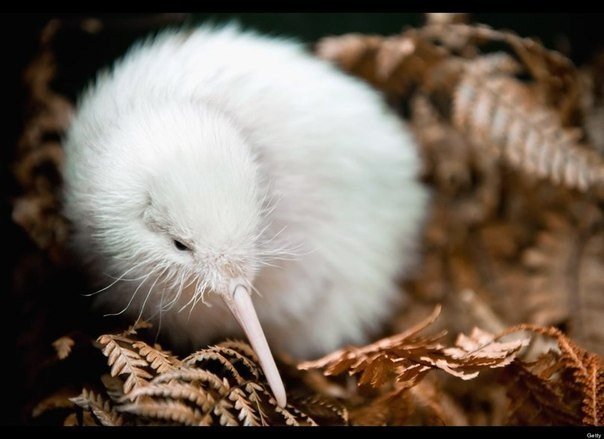 Белые киви - чрезвычайно редкое явление. Обычно цвет перьев киви варьируется от серовато-коричневого до светло-бурого. Выжить в дикой природе слишком заметная особь киви белого цвета вряд ли сумеет9 写真