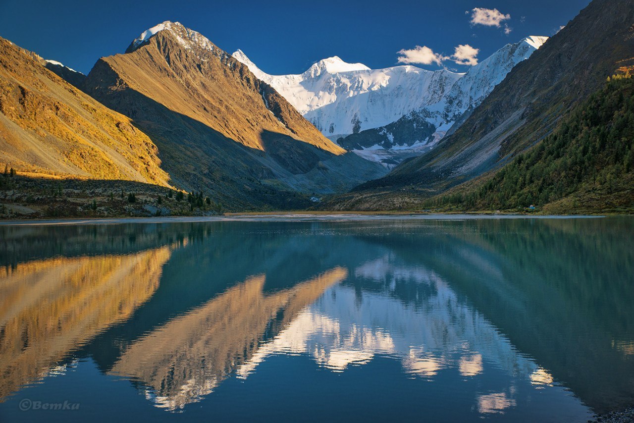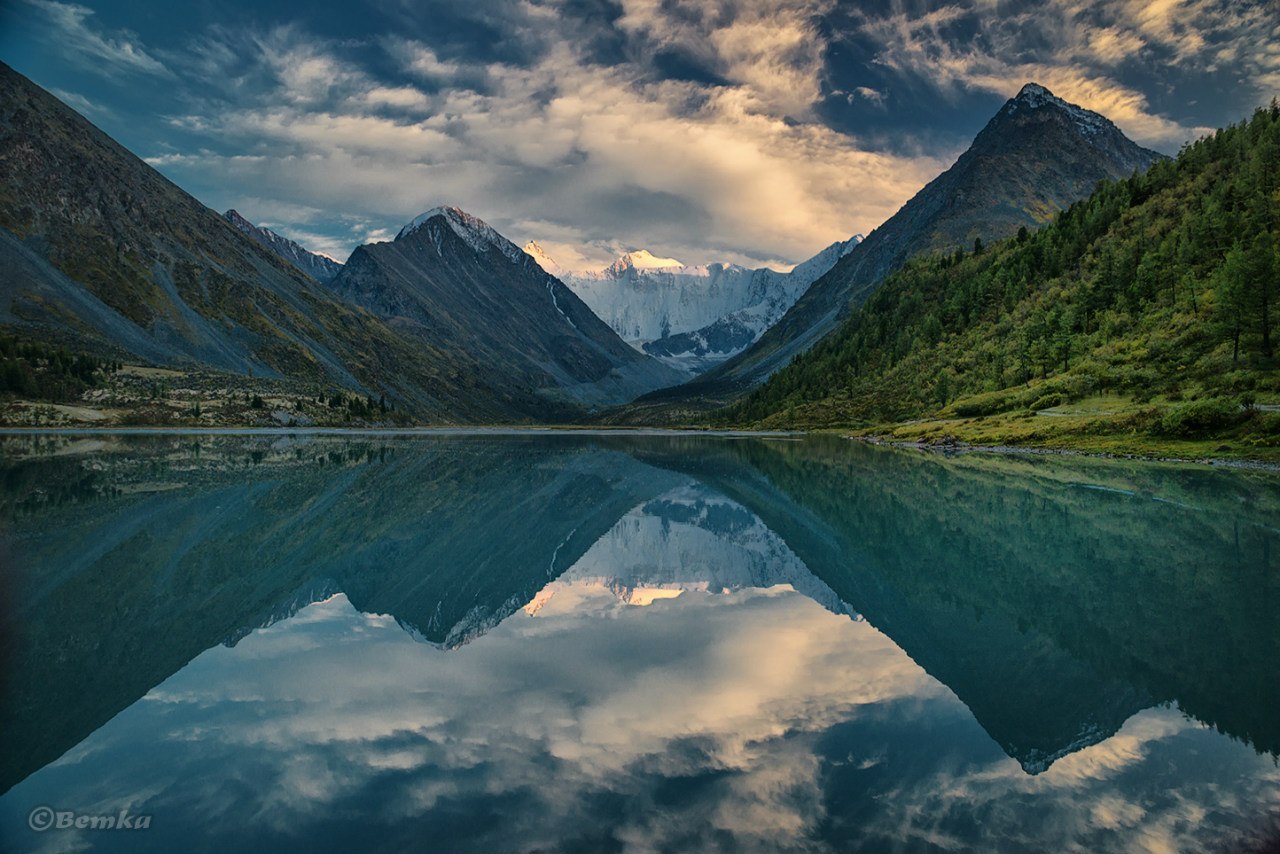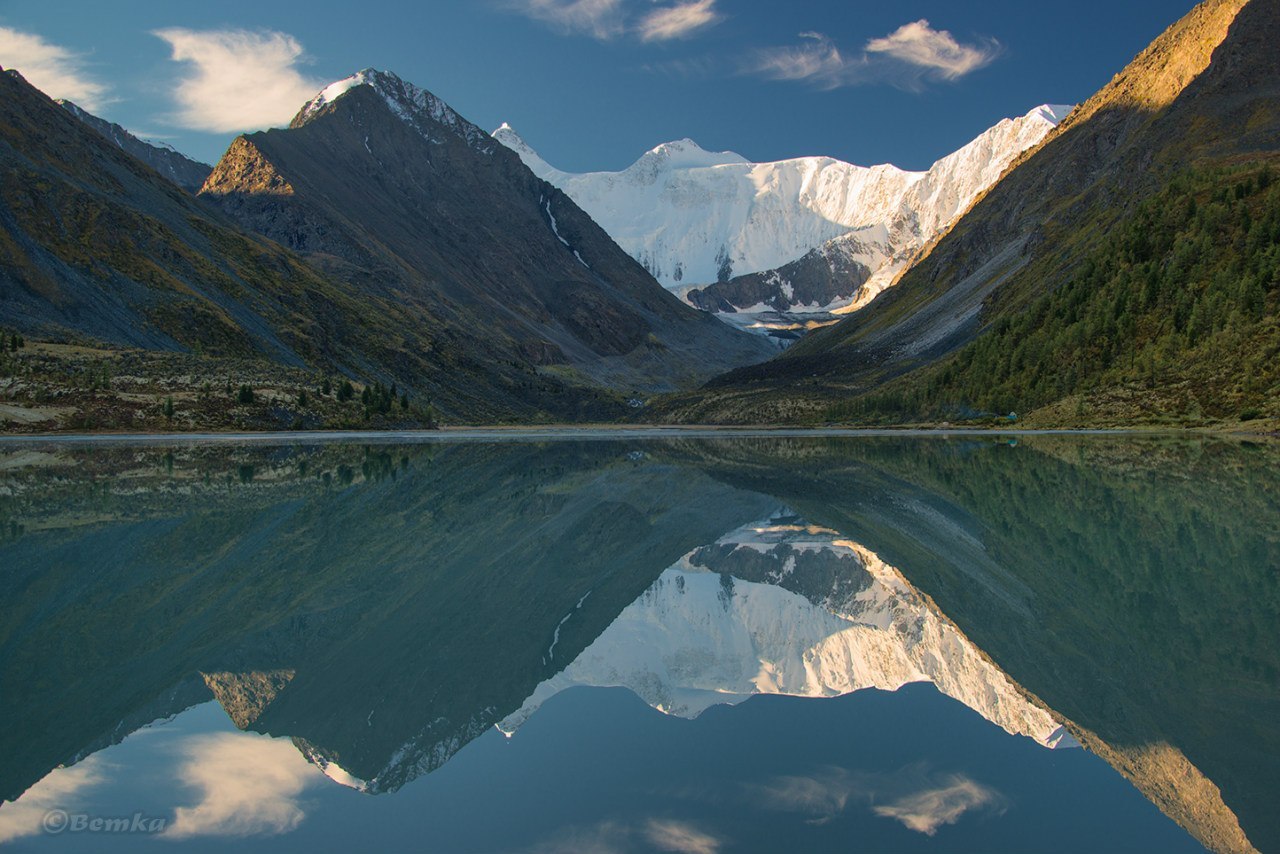 Пик Белуха и озеро Ак-Кем. Алтай. Россия