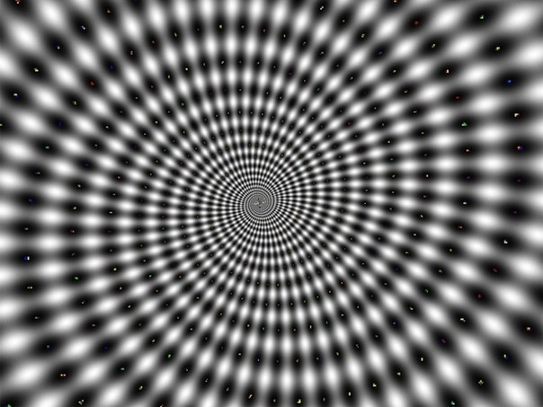 Przedstawiamy kolekcję zdjęć, na których wyobrażenia ze względu na swój format wyglądają jak żywe – pulsują, obracają się, przemieszczają się w różnych stronach itd. Nie używamy tu żadnej animacji w formacie gif, jest to prawdziwa iluzja optyczna, efekt zmysłu wzrodu. W niektórych zdjęciach obrazy ożywają natychmiast pod naszym spojrzeniem, w innych potrzebny jest kilka sekund, by to się stało. Czemu tak jest? Nasze percepcja funkcjonuje na zasadzie rozpoznawania i próbuje dostosować każdą informację, która napływa do nas z zewnątrz, do wcześniej ustanowionych wzorców. W ciągu kilku milisekund mózg przeszukuje swoją „bazę danych” w poszukiwaniu najbardziej podobnego obrazu. Jeśli oryginalne zdjęcie jest nieruchome, a mózg znajduje podobne dynamiczne, to wyświetla nam właśnie to drugie.