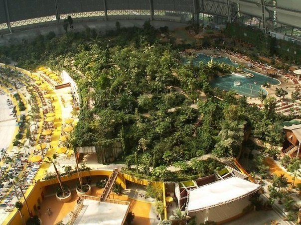. Jedyną różnicą, którą on ma w porównaniu z prawdziwym tropikalnym kurortem, jest to, że znajduje się daleko od morza, pod wielkim sztucznym kopulem. Powstał w opuszczonym hangarze lotniczym. Pod kopulą znajduje się również największy na świecie tropikalny las, wyrosłycy w pomieszczeniu, prawdziwa tropikalna wioska z prawdziwymi domami, sklepami i restauracjami. A co najważniejsze, tu są piaszczyste plaże, laguna i tropikalne morze, gdzie można się kąpać.