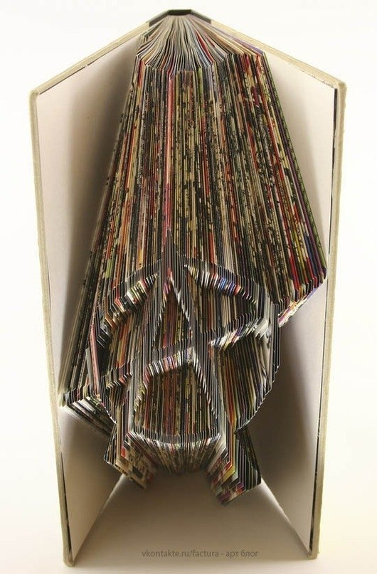 Artysta Izak Salazar – tak naprawdę umie to robić! Wszyscy mieliśmy w dzieciństwie przyjemność składając kartek u książek. Ale nikt nie osiągał rezultatów podobnych do tych, które zobaczysz tutaj. Wielu artystów wykorzystuje książki „nie według ich przeznaczenia“, ale nie wszyscy dają im szansę na normalne „życie po tym“. Ponadto Izak używa tylko książek i swoich rąk – bez żadnych nożyczek.