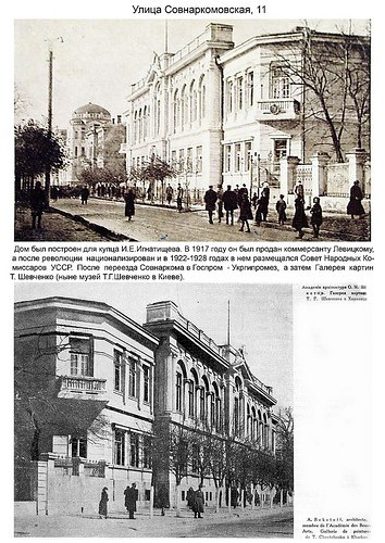 Później w budynku przez pewien czas znajdowało się instytucje Ukrgipromez, a potem budynek został przekazany Instytutowi im. T.G.Szewczenka (obecnie Muzeum jego imienia w Kijowie). W latach 30. XX wieku niektóre pomieszczenia zostały przerobione na klasy i udostępnione grupie wyjątkowo zdolnych uczniów przy Charkowskiej Konserwatorili; w 1943 roku z tych klas powstała specjalna szkoła muzyczna. Dziś w budynku znajduje się Muzeum Sztuki.