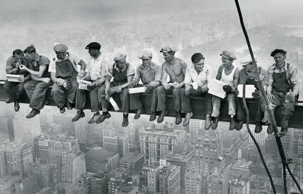 Na zdjęciu widać budowców na 69. piętrze Rockefeller Center w Nowym Jorku.5 zdjęć