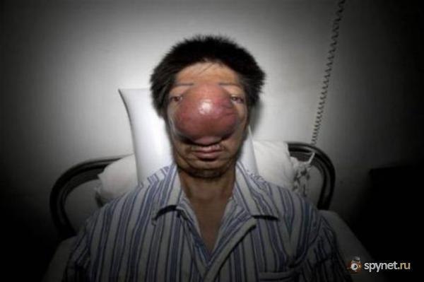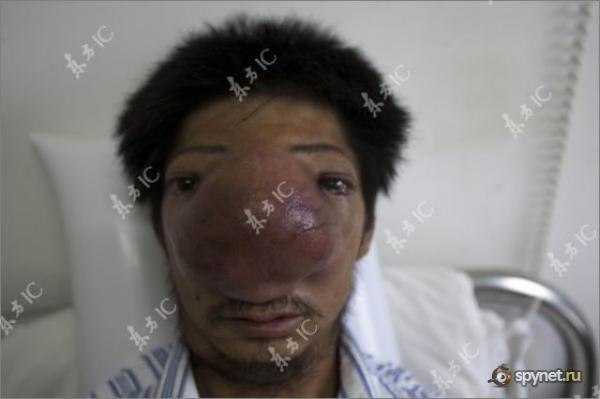 Guzik stawał się coraz większy i więjszy, ale z powodu swojej biedności ten biedak nie móg sobie pozwolić żadnej medycznej pomocy. Gdy nos urosł do wielkości dłoni, lekarze w mieście Changchun w końcu zaoferowali mu bezpłatną opiekę medyczną.