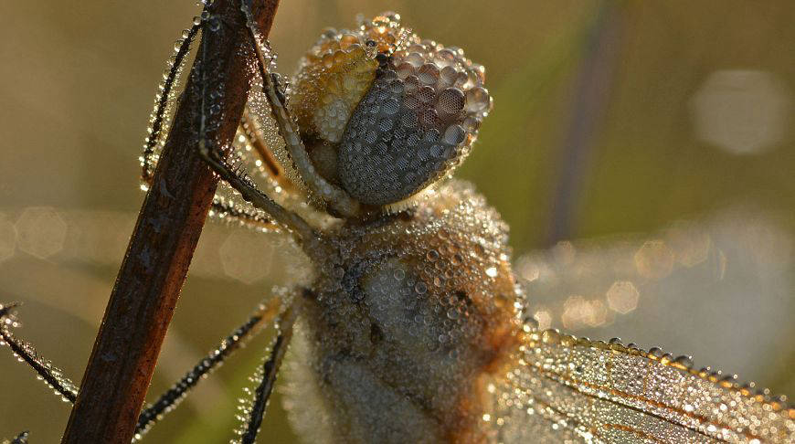 Стрекоза в каплях утренней росы