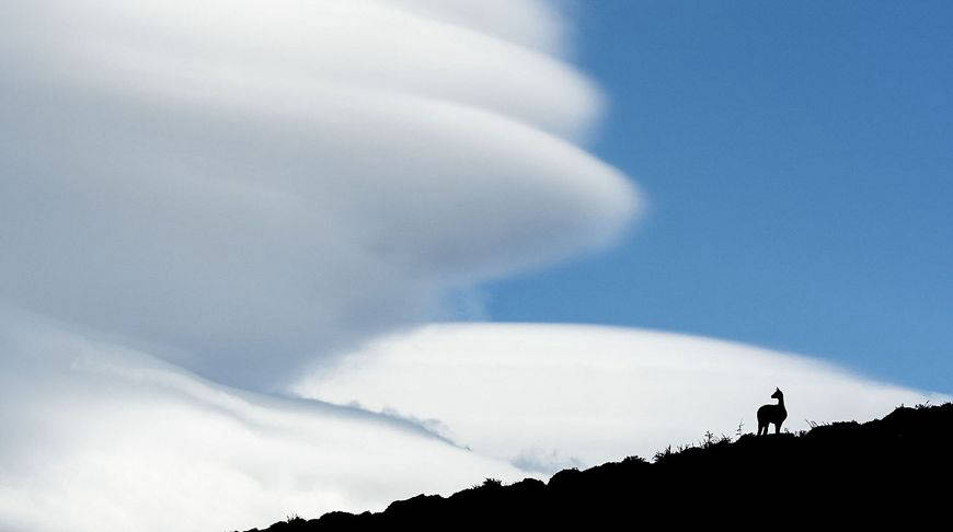 Смотровая площадка в окружении лентикулярных облаков, Пататония, Аргентина