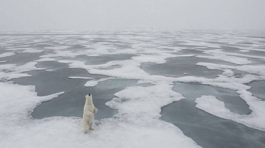 Белая медведица прислушивается к запахам ветра на Шпицбергене