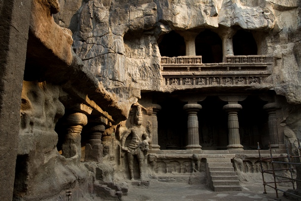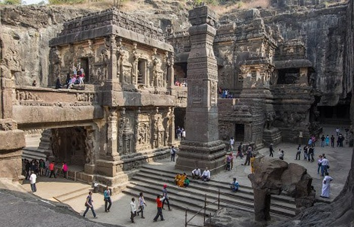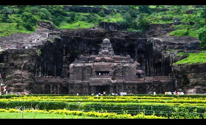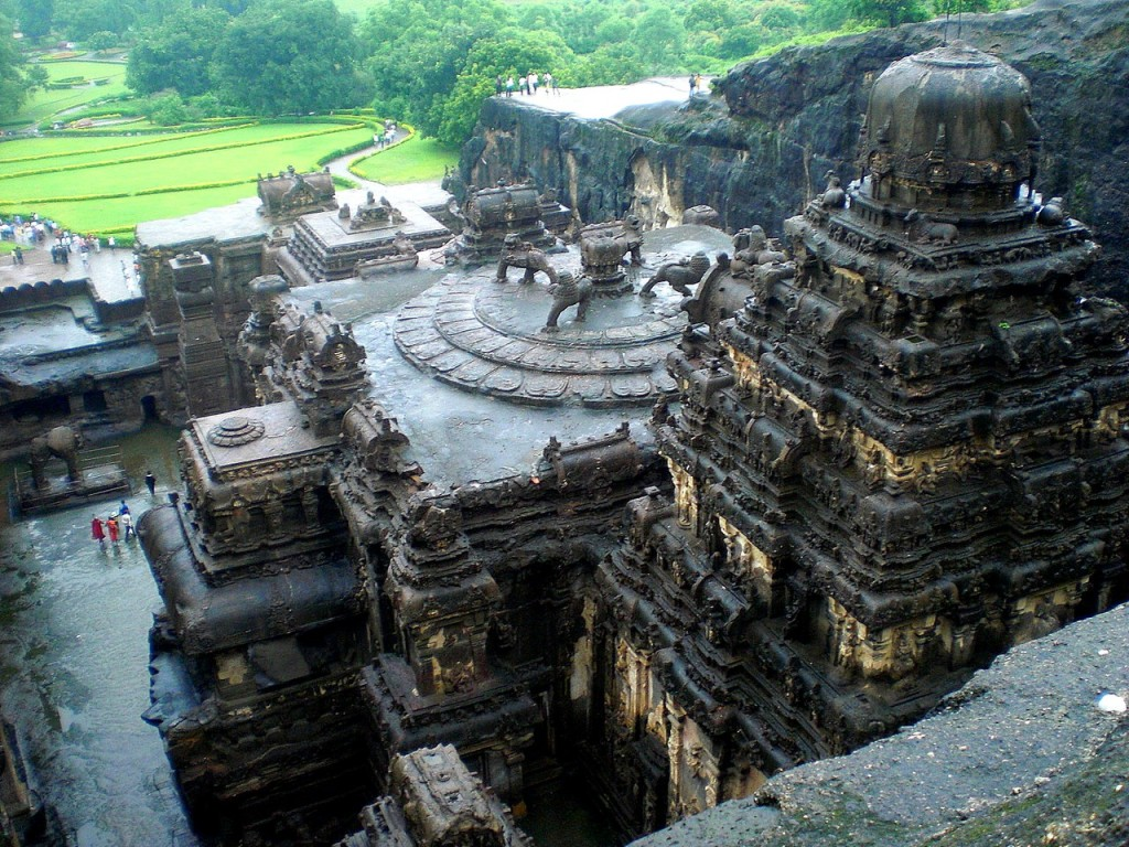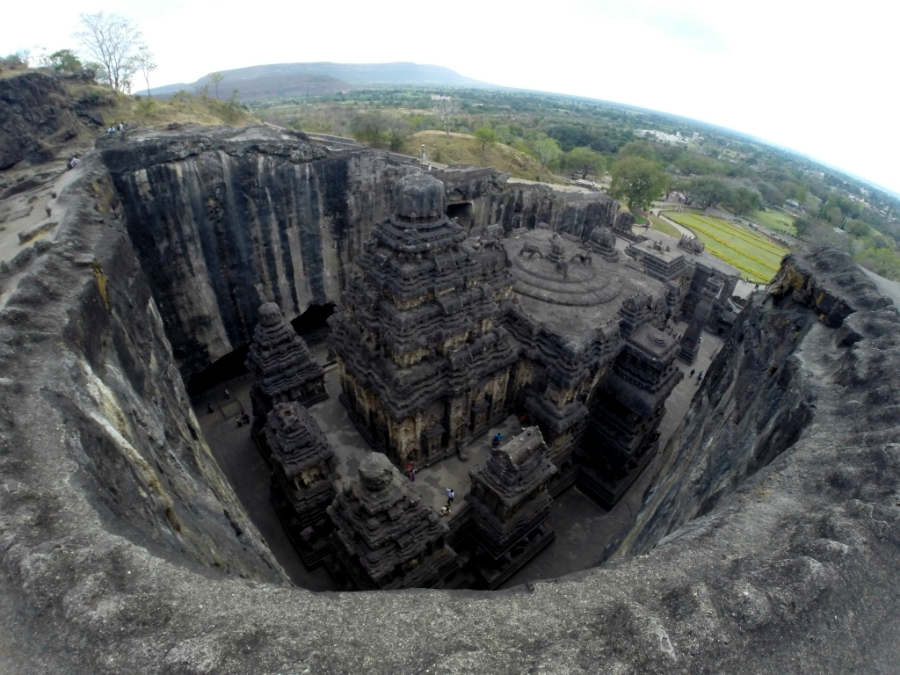 Индийская деревня Эллора прославилась на весь мир своим многоэтажным пещерным комплексом храмов. Самым грандиозным и невероятным из всех пещерных сооружений Эллоры является Кайлаш — самая большая в мире монолитная структура, высеченная в скале.