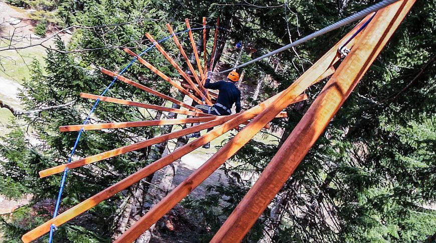 Людям, не привыкшим к физическим нагрузкам, канатно-веревочные приключения могут показаться непростым делом. Но упускать шанс почувствовать себя героем приключенческого фильма никак нельзя. Какую только преграду не одолеешь на волне азарта!