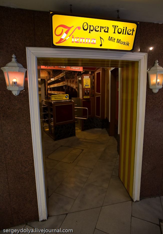 Фотография взята из Википедии Так же, как и конфетки Моцарт, торт можно приобрести в Duty Free перед вылетом на Родину. В подземном переходе рядом с оперой спрятался самый музыкальный общественный туалет в мире: