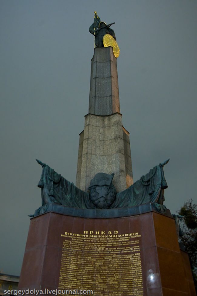 Если пройти чуть дальше за Карлову Церковь, то Вы окажетесь около памятника Советским воинам освободителям. Эта фотография сделана ночью во время одноо из прежних визитов. Сейчас памятник весь в лесах - его реставрируют. Вот у кого Эстонцам поучиться надо: