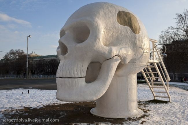 Зачем ее поставили и для чего я совершенно не понял. По лесенке, ведущей внутрь, подняться нельзя - двери замурованы, а сбоку черепа висит неработающий душ. Есть какие-либо идеи?