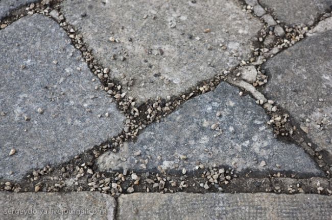 Улицы здесь посыпают не песком с солью, а мелкой каменной крошкой. Ходить по ней не приятно - хрустит под ногами и впивается в подошву: