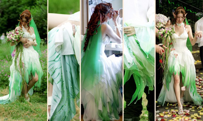 Первый, и, наверное, самый простой способ разнообразить праздник – переодеть невесту в какой-нибудь сложносочиненный наряд. Мелочь, а приятно. Все-таки невеста – это композиционный и смысловой центр любой свадьбы, так что если облачить ее в костюм доброго эльфа, розовую пачку, платье а-ля горничная или драные джинсы, получится вполне себе креативно. Конечно, желательно, чтобы жених соответствовал, но это уж кто и во что окажется горазд.
