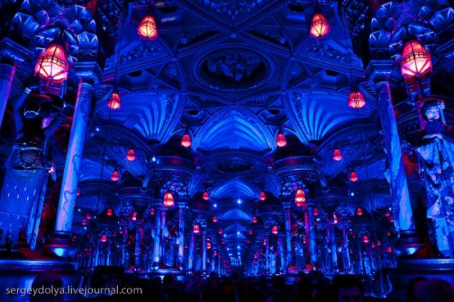 Прежде, чем попасть в сам музей, все посетители заходят в небольшую круглую комнату (метров 5 в диаметре) с зеркальными стенами. Свет выключается, и начинается светопреставление. Создается впечатление, что я попал на бал к Воланду в другое измерение, и комната превратилась в огромный бескрайний зал: