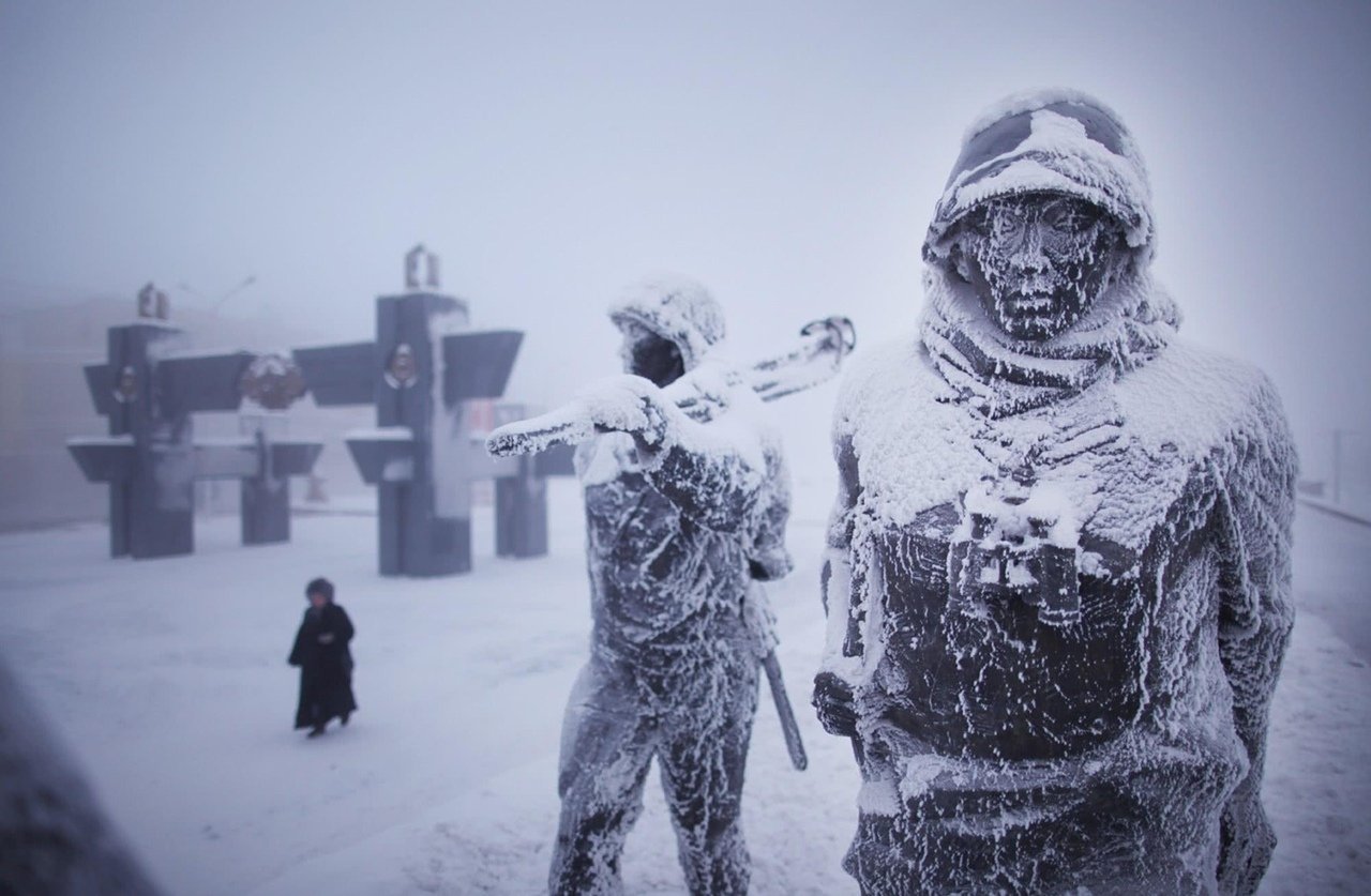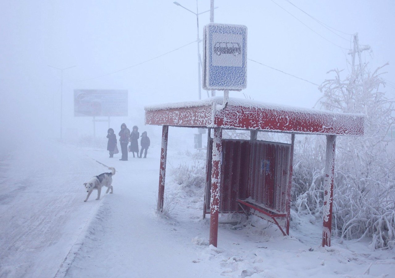 Оймякон, Якутия - самое холодн��е место на Земле, где постоянно проживают люди (более 450 человек). Средняя температура зимой -45 градусов, но бывает и больше 60 градусов мороза.