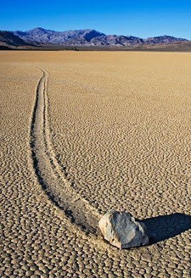 Камни (вес некоторых составляет сотни килограмм), скользят по глиняной поверхности, оставляя за собой кильватерный след. Еще никто не смог стать свидетелем этого явления.
