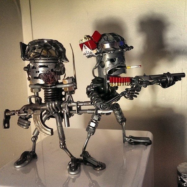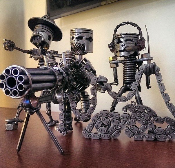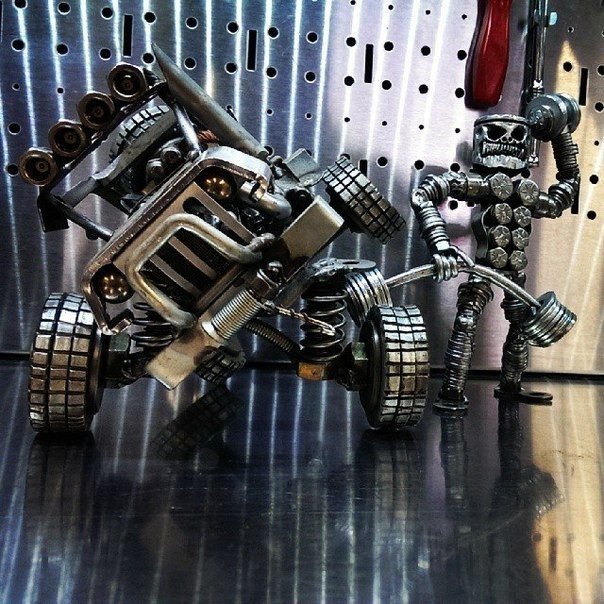 Суровые работы из деталей от мертвых двигателей и металлолома от парня по имени Tyler из компании Tigger Welding. . Восхитительно и чертовки брутально.<br>Вот это искусство, вот это красота10 фото