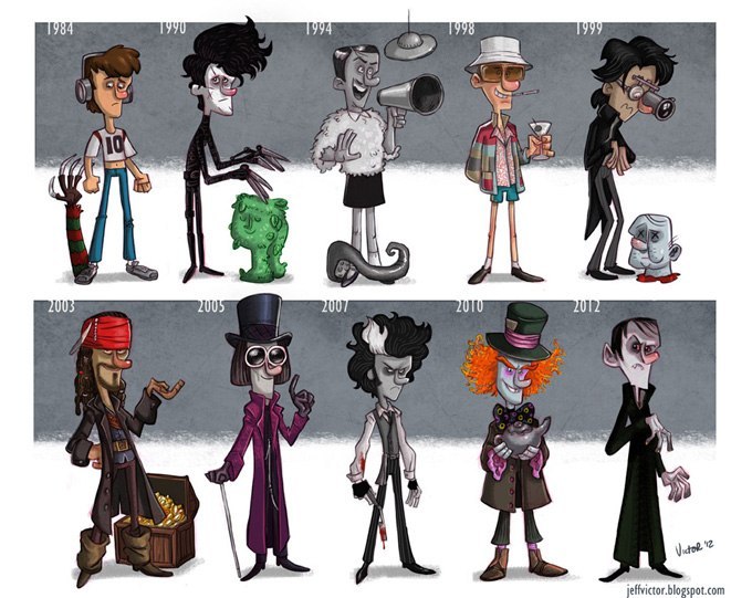 . Иллюстрации показывают как менялись актеры и актрисы: Джонни Депп, Ума Турман, Том Хэнкс, Джек Николсон и другие.