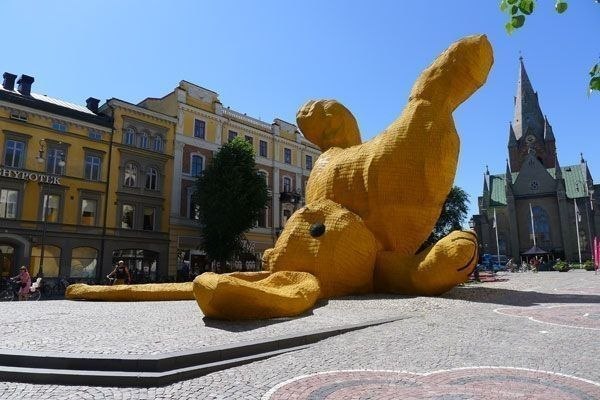 Флорентин Хофман (Florentijn Hofman) из Голландии считает, что размер имеет значение. Он переодически развлекает людей гигантскими скульптурами и инсталляциями. В 2011 году он сконструировал огромного желтого зайца прямо на площади Эребру в Швеции. Этот 13-метровый симпатичный и ушастый зайка являлся временной инсталляцией из металла, бетона и дерева, которая была приурочена к биеннале Открытого искусства, которая каждый год проходит на территории Швеции.