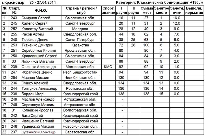 Протокол. Классический бодибилдинг до 180 см и 180+2 фото