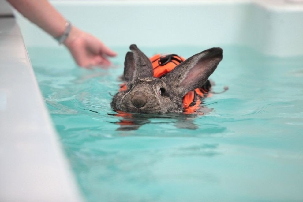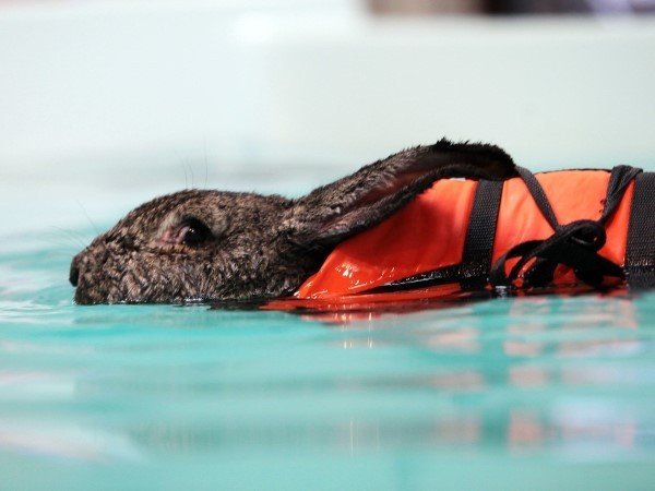 У крольчихи Хэйди артрит. Чтобы ее задние лапки болели чуть меньше, хозяева носят ее на плавание несколько раз в неделю6 фото