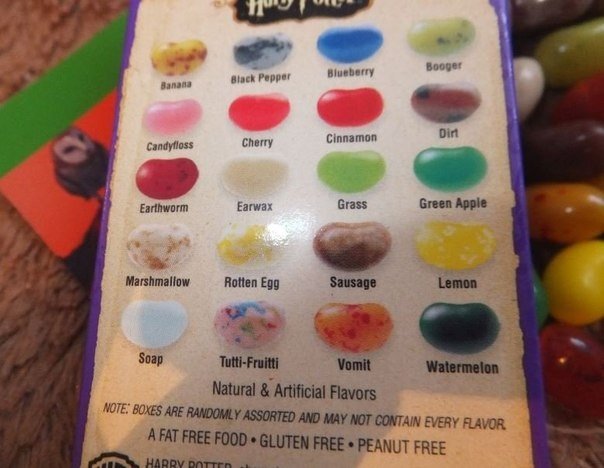 Они существуют! <br>Компания Jelly Belly выпускает необычные сладости. Это «Конфеты с Любыми Вкусами от Берти Ботт. Ушная сера и рвота в каждой коробочке3 фото