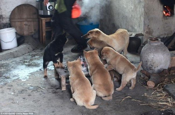 Умиляющие фотографии греющихся щенков возле жаровни5 фото