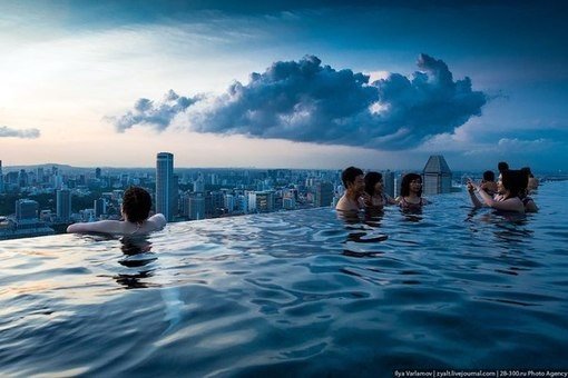 Самый крутой отель на свете, Marina Bay Sands в Сингапуре. Бассейн под облаками3 фото