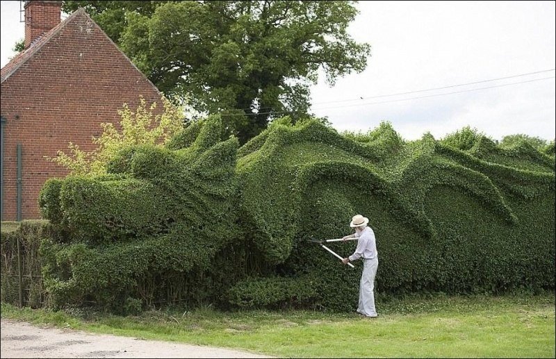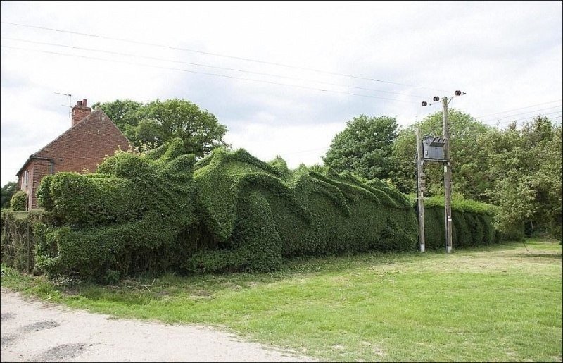 Живая изгородь в форме дракона. Садовник Джон Букер из Норфолка потратил ДЕСЯТЬ ЛЕТ на то чтобы превратить живую изгородь в скульптуру дракона. Длина получившегося чудовища составляет 30 метров6 фото